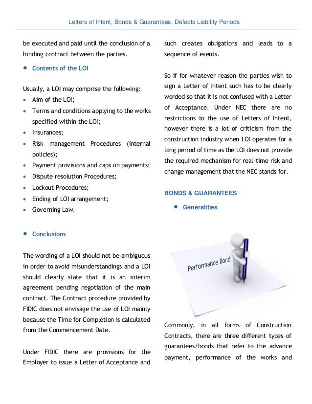 Letters Of Intent Bonds Guarantees Defects Liability Periods